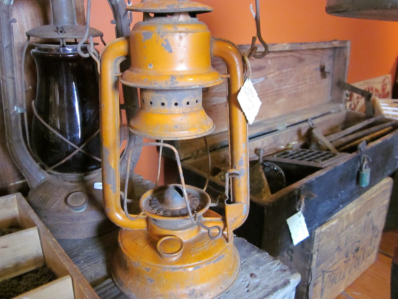This little orange lantern belonged to the Boston Department of Public Works. I know because it is stamped so on the other side. I love to think of a hundred plus years ago some hard working person relied on this little gal for light. But the best part? She is called Little Defiance! That is her official name decided by some official lamp-making company person. I am selling her for $14 and can't believe nobody has snatched her up. I adore her. She is one of the reasons I decided to open a store, because I need to let people know about her and her kind.